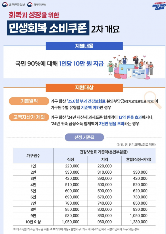2차 소비쿠폰 지급 대상과 선정 기준은 여러 요소가 있음: